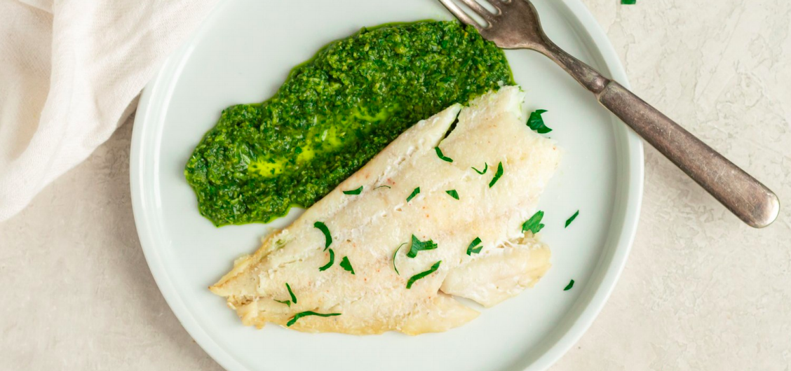To serve, divide the fish and green olive sauce between plates and enjoy!