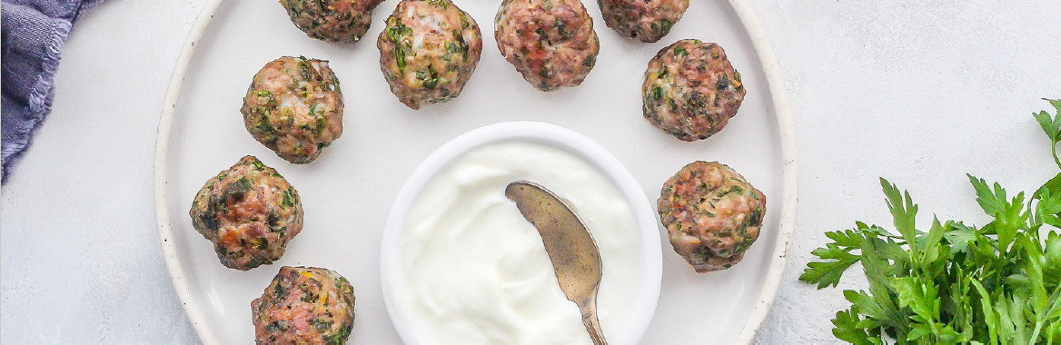 In a large bowl, add the ground lamb, parsley, mint, oregano, sea salt and lemon zest. Mix well using your hands. Roll into balls roughly the size of a golf ball and place on the baking sheet. Cook for 15 to 20 minutes. Remove and serve with coconut yogurt as a dip. Enjoy!