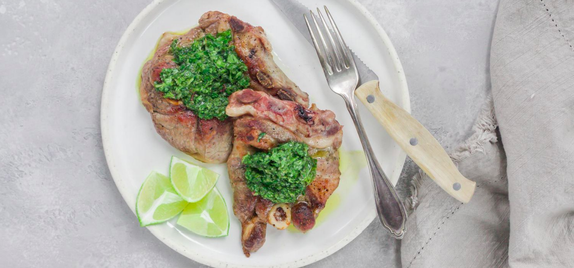 Lamb chops with an herby green sauce make a stunning dish. This simple meal comes together quickly even on a busy weeknight and can be paired with practically anything!