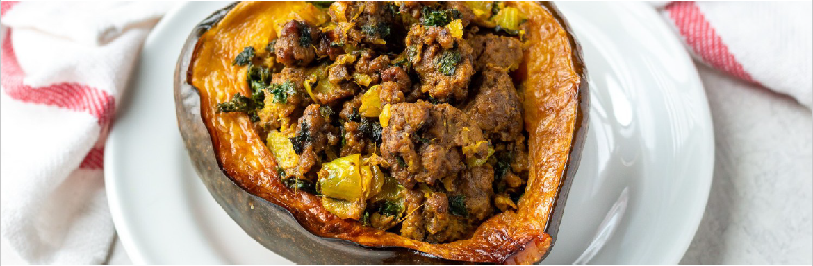 Turn the squash cut side up and fill the beef mixture. Return to the oven and continue to bake for an additional 10 minutes.