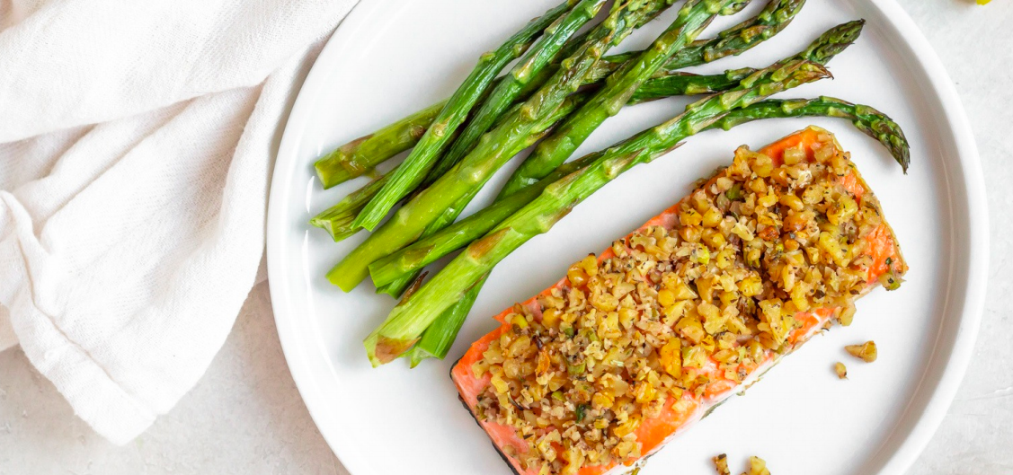 Walnut Crusted Salmon with Asparagus